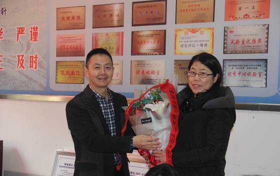 公司领导班子向女员工代表们赠花表示节日祝福,杜义祥董事长代表公司向全体女员工致以节日的问候,并对大家兢兢业业的工作和无私奉献予以了肯定和感谢!